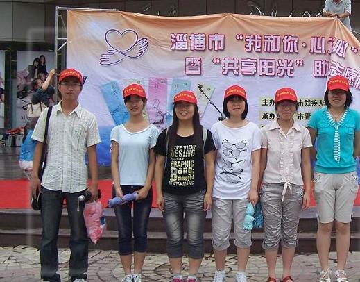 6月19日上午,淄博市“我和你•心连心”旅游助残活动启动暨“共享阳光”助残志愿服务队授旗仪式在淄博银座购物广场举行,副市长刘有先、省残疾人基金会秘书长李新兰、市文明办、市团委、市旅游局、市残联等领导人出席了此次仪式,该仪式由市政府副秘书长霍自国主持。我院爱心家园的青年志愿者参加了此次活动。