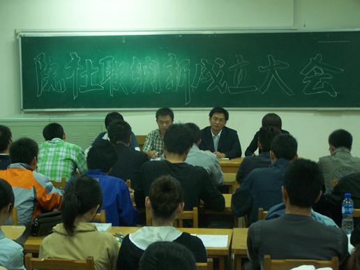 首先,院社联副主席李凯同学宣读了社团联合会新成员的名单。接着,团总支刘灿德老师发表讲话,他首先对08级的新成员的加入表示欢迎,对新成员提出了几点希望:一、要协调好学习和工作之间的关系,争取在两方面都有突出的表现;二、要在借鉴以前工作的经验上,充分发挥自己的办事和创新能力,为学院社联工作的建设增砖添瓦,使之更上一层楼;此外,刘灿德也对新学期的工作提出了自己的几点具体要求。