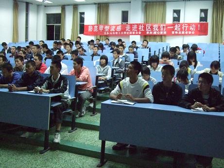 讲座开始后,任继宽向同学们介绍了世界各国家和地区的最新疫情,让同学们意识到预防甲流的重要性。详细的为同学们讲解了预防甲流的各种有效措施,她说要加强个人卫生和增强公共卫生意识,把良好的卫生习惯牢记心间。为了达到更好的宣传效果,杜绝甲流在我校发生,爱心家园11号上午在博大花园,餐厅附近定点为全校师生发放单页,宣传有关甲流的防范措施。任继宽让在场的同学充分认识到了预防甲流的重要性,摆脱了对甲流恐慌的阴影。