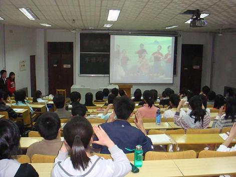 首先,爱心家园副会长魏星带领大家复习了《感恩的心》。随后,她用娴熟的动作教给了大家一首新歌《爱的奉献》和日常用语及26个字母。教授完毕后,鼓励现场同学进行表演,同学们纷纷踊跃参加,在一遍遍的练习之后,同学们的手语表演越来越熟练,现场气氛不断高涨。