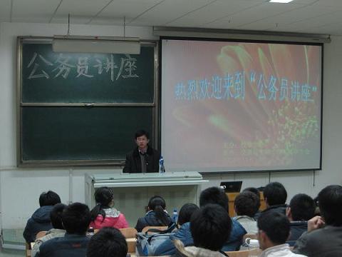 为了迎合广大学生对公务员考试等相关内容了解的需求,11月14日晚,由校学生会主办、williamhill威廉希尔学生会承办的公务员系列讲座之“学术与励志”在5号教学楼106教室举行。