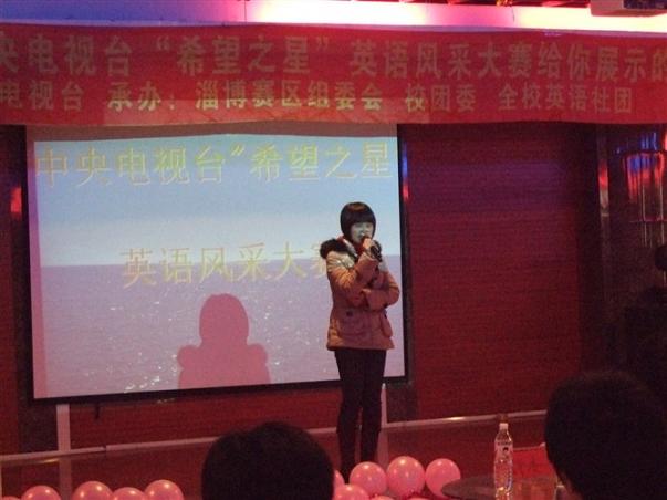 12月3号下午2010年度中央电视台“希望之星”英语采风大赛淄博赛区大学组比赛在大学生艺术中心多功能厅顺利举行。本次大赛由中央电视台淄博赛区组委会、校团委主办,全校英语社团承办。