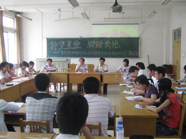 车辆工程08级2班团支部书记常静同学主持了此次活动,活动主要以“自由发言讨论”的形式进行,简捷地说明介绍一块学习之后,同学们围绕“仰望星空,脚踏实地”这个主题展开了探讨,大家依次发言、各抒己见,同学们发言或慷慨激昂或稳重大方或幽默风趣,很快大家就一扫最初的紧张情绪,积极地参与到讨论中来、争先恐后地进行发言。