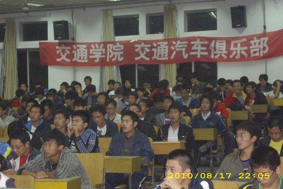 纳新会一开始,汽车俱乐部的孟庆猛会长就俱乐部的历史文化,活动项目等方面做了详细的说明。他指出,交通学院的汽车俱乐部是汽车爱好者的集结地,在这里汽车爱好者可以充分享受的汽车带来的激情;当然,在这里,大家还可以充分发挥自己的想象来制造自己的汽车模型,因为汽车俱乐部注重的是发散性思维与动手能力,大家可以在汽车俱乐部举办的汽车模型设计大赛和卡丁车大赛中充分展现自己的才能……其间,孟庆猛也放了很多关于汽车的视频,更加激发了同学们对汽车的热爱。