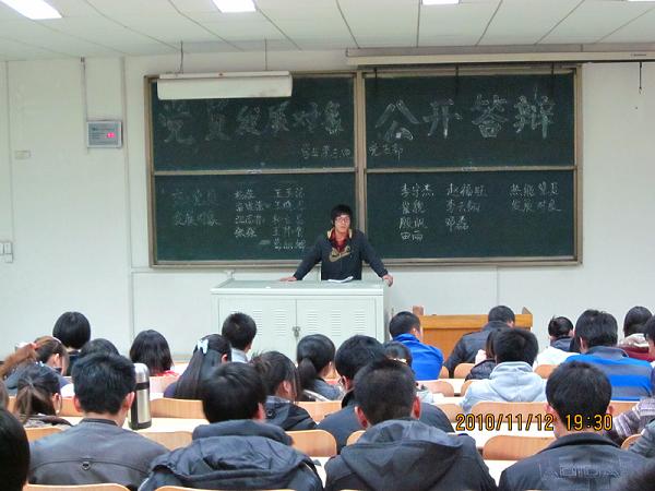 11月12日晚,我院第一、二、三、四学生党支部以及研究生党支部党员发展对象在5号教学楼102、106、108三个教室进行了公开答辩。院团总支书记侯宁以及支部内的党员、预备党员、入党积极分子参加了答辩会。