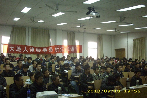 2010年11月26日下午,由交通学院团总支主办、创业先锋社承办的大地人律师事务所法律讲堂在四号教学楼顺利举行。