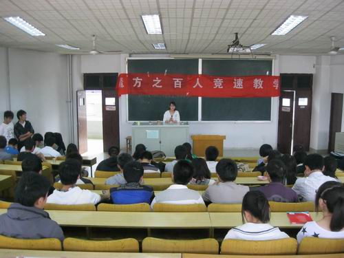 此次百人竞速教学活动,是在全校范围内招集魔方高手,并通过比赛推出10位选手晋级,同时在校内招募百名魔方学习志愿者。由晋级选手担任授课人员,负责在一个月内教会全部志愿者魔方还原技能。在当日的活动中,魔方协会会长臧超首先向大家讲解了魔方的起源与发展等特有文化,让大家在认识、了解魔方文化的同时,提高了学习魔方技能的兴趣。之后臧超向志愿者介绍了10位晋级选手,并以志愿者本人抽签的方式,将百名志愿者分为十只队伍,并安排了了特定的授课人员,通过这种大家一起玩魔方,老师手把手教魔方的方式,提高魔方技能,普及魔方文化。本次活动最后,众多魔方爱好者互相交流玩转魔方的心得体会、方法技能等,促进彼此共同进步。