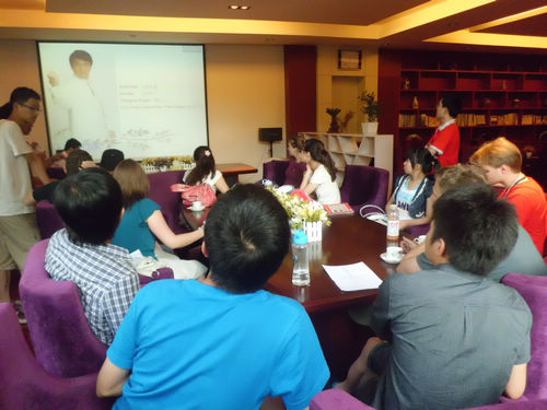 此次英语沙龙活动以“film show”为主题。并通过观看PPT与自由讨论相结合的形式开展。PPT内容为大家熟知的电影及电影明星,为便于大家讨论社团负责人还特并设了几个小问题。自由讨论中同学们根据自己的理解发表自己的观点,相互交流看法。活动在主持人妙趣横生的开场白后正式开始。大屏幕上出现的李小龙、成龙图片立即吸引大家的注意,随着PPT的播放,同学们和外教不由的展开自由讨论。虽大部分同学与外教的英语交流很不流利,但活跃的现场气氛使他们完全融入其中,尽全力表达自己的观点。活动在讨论中顺利结束。