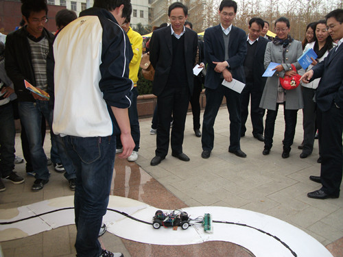 我院认真准备大学生学术科技节展区布置,整理收集并展出了包括四位一体汽车反劫持系统、太阳能与汽车尾气余热温差发电装置、飞思卡尔智能车等学生科技创新成果。同时,精心铺设了飞思卡尔智能车轨道,现场展示飞思卡尔智能车运行过程,并详细讲解智能车运行原理、设计过程等,吸引了众多师生驻足,让广大学生近距离体验大学生科技创新魅力,引导大学生积极参与科技创新,赢得广大师生鼓掌喝彩,集中展示了我院大学生科技创新的风采。