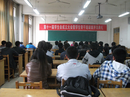 3月29日下午,我院第十一届学生会成立大会暨学生骨干培训班开班典礼在12号教学楼211教室举行。学院团总支老师及学生会新老成员参加此次会议。