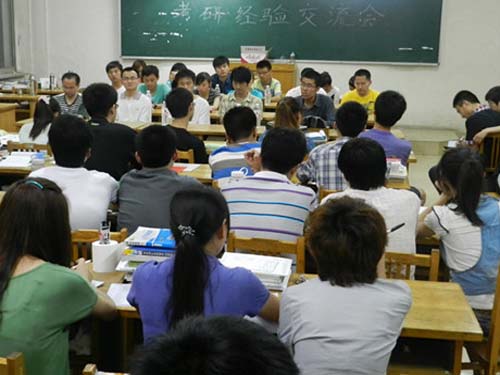 主持人王常伟对此次交流会进行简单介绍后,交流会正式开始。08级各毕业生结合自身经历,针对考研时报考学校、专业方向的选择、作息时间和课程复习时间的安排、各门功课复习时的技巧、在复习中容易遇到的问题和解决方法以及考试时心态的调整等方面跟大家分享了自己的经验。他们提到,同学们应该珍惜现在宝贵的时间努力学习,平时多积累,从现在就打好基础。他们还提出“考研六分在努力,三分在心态,一分在机遇”的观念。并提醒大家,考研要摆正心态、要相信自己,只要认真、努力就一定能考上自己满意的大学。随后,交流会进入自由讨论阶段,同学们根据自身不同情况向不同学长提出自己在备战考研过程中遇到的的问题和对考研流程的疑惑,并询问了报考的大学的情况,各学长也就不同问题做出了详细的解答。