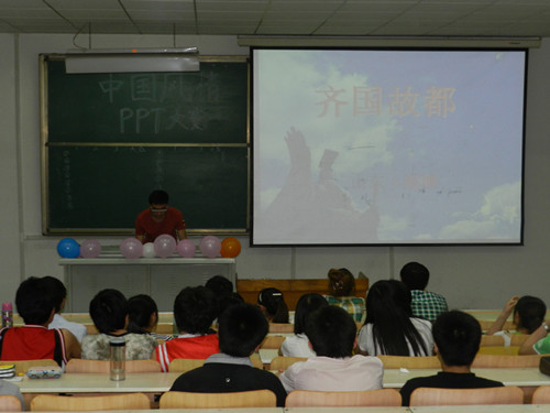 为丰富同学们的业余生活,增加同学们对传统文化的了解,5月5日晚,由我院幽然书友苑举办的中国风情PPT大赛在4号教学楼204教室举行。该社团会长高爽及其他两位副会长担任此次大赛的主要评委,来自各学院的15名爱好者组成大众评审团。在预赛阶段脱颖而出的16位选手参加了此次比赛。活动由幽然书友苑成员付首强主持。