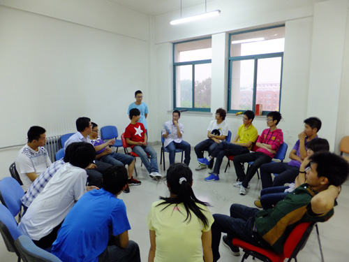 活动伊始,黄旭组织大家进行自我介绍,以增强成员间的相互了解,为后续活动打下良好的基础。结束后,大家进入了团队心理游戏环节。首先开展的是 “马兰开花”,大家按照主持人介绍的游戏规则,积极参与,相互配合,现场气氛融洽而活跃,不时传来阵阵笑声。接下来是 “海上生存” 游戏,通过小组八位成员的相互配合,站在半平米的固定区域内,该环节使大家深刻感受到团队合作的力量,增强成员间团体协作意识。黄旭还组织大家进行“齐眉棍”游戏,每小组成员用一根手指,通过彼此间的合作将木棍举到齐眉高度,该游戏旨在使成员学会如何处理个人与团体的关系,提高成员间的配合默契程度。活动最后,黄旭组织大家对所做游戏进行反思,社团成员积极踊跃地分享游戏中的所感所得,黄旭针对大家的心得体会做了总结,对如何提高社团整体的凝聚力做了指导。社团成员纷纷表示通过此次活动体会到集体归属感和团体合作的重要性。