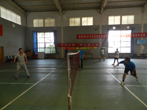 在首先举行的羽毛球比赛中,女子比赛率先展开。比赛始终秉持着“友谊第一、比赛第二”的原则。在刘菲菲老师和沈玉凤的比赛中,两个人技术运用都十分娴熟流畅,放短球、吊后场、扑救、后场进攻,战术运用自如,两人比分你追我赶,不相上下。最后一刻,罗玉凤出手果断,一球破发,以21:20赢得比赛,两人握手相贺。随后进行的男子组的比赛也十分精彩,他们跑动范围更大,抽球更加果断有力,打出多次多拍回合球,比赛异彩纷呈。最终经过激烈的争夺,张增果、王家辉、王刚分获比赛一、二、三名。