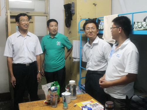 学院领导走进同学们的宿舍,亲切的询问同学们在入学后的生活情况,鼓励他们尽快适应大学环境,珍惜来之不易的大学生活,努力学习知识,提高自身各方面的能力,学有所成。每到一间宿舍,老师们都会细致观察宿舍环境,发现宿舍存在的问题并及时提出建议,叮嘱他们学习、生活中要注意的事项,提醒同学们在入学期间保管好自己的财物,防止上当受骗。学院领导还就如何维护宿舍同学之间关系、如何营造良好的宿舍学习氛围给同学们提供良好的建议。学院领导与同学们进行了亲切交谈,耐心解答同学们入学以来遇到学习和生活方面的问题,同学们对老师们的关怀深表感谢。