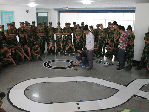 一走进综合实验楼的大厅,同学们的眼睛立刻被眼前的赛车吸引住了。智能控制的瑞萨超级MCU模型车沿着黑色的跑道快速的奔驰,自动识别赛道的飞思卡尔智能车灵活自如的转弯。同学们充满了好奇,兴趣十足的询问各种问题。科技创新实验室的成员一一解答同学们的疑问,向同学们耐心的介绍赛车的车体结构和驱动原理。小小的赛车竟涉及自动控制、模式识别、传感技术、电子、电气、计算机、机械与汽车等多学科专业的知识。同学们驻足观看,体验到智能车带来的无限乐趣,纷纷表示希望能够加入科技创新团队锻炼自己,增强科技创新能力。