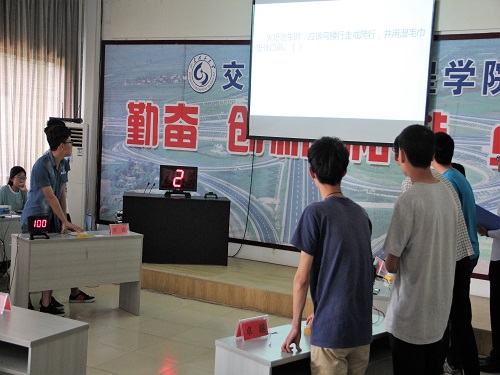 此次竞赛答题分为安全找茬、扬帆起航、谁与争锋、一站到底四个部分,各队通过争夺答题时间、轮流答题、抢答题等环节进行比拼。在首先进行的“安全找茬”和“扬帆起航”环节里,参赛选手们集中精力擦亮慧眼,快速地找出了宿舍中的安全隐患,并对问题做出正确的解答,展现出了他们敏锐的观察力和广泛知识面。随后进入到“谁与争锋”抢答环节,各队选手激烈争夺答题权,其精彩的抢答将比赛气氛推向了高潮。在最后的“一站到底”环节中,各队代表争分夺秒,快速反应,努力为队伍多拿分数。经过激烈的角逐,厚德队获得第一名,至善队获得第二名,笃行队获得第三名,比赛在掌声中结束。