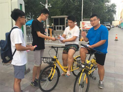 7月11日,williamhill威廉希尔平安交通实践团正式开始社会实践。团队中10人分为三组分别去调查淄博三个不同的地方,通过ofo小黄车app寻找到小黄车的各个聚集点,最终小组选择了人民政府去调查。小组成员于上午8:30到达市政府正门,先对市政府周围路段进行观察,寻找小黄车的聚集地,并且沿途为过往的行人发放调查问卷。经小组成员观察,市人民政府西邻柳泉路,南邻人民路,处于交通重要位置,车流量较大,行人也比较多,但是共享单车的数量过少,不足够人们使用,小组成员提出ofo共享单车应该加大这一区域小黄车的投放量。
