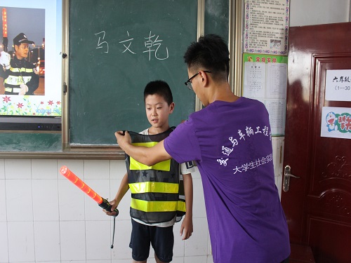 为增长孩子们的交通安全知识,提高孩子们的交通安全意识,我院“爱之传承”实践团于7月12日下午,在二楼东教室举行了交通安全知识讲座,该实践团队长马文乾现场讲解。