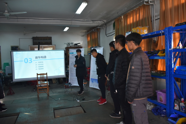 紧接着,由车身车架组负责人刘科岳向同学们详细介绍了车队历史、获奖情况、车队内部建制(运营、技术)、各组职能以及第四代赛车技术关键及创新点等情况。并简单提及了中国大学生方程式汽车大赛等其他与车队发展相关的赛事。最后,刘科岳通过让大家观看2018赛季官方宣传视频及至尚车队纪录片,使同学们对车队有了更直观的认识,对于科技创新也有了自己独特的见解。