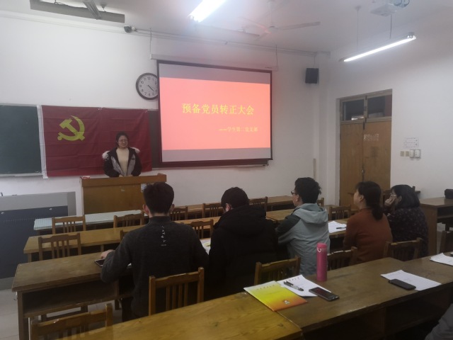 12月6日下午,我院学生第二党支部在12号教学楼212教室开展预备党员转正大会,会议由学生第二党支部书记范晶晶主持,支部全体党员参加了此次会议。