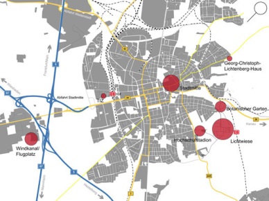达姆斯塔特大学由两个主要校区和几个遍布整个城市的建筑组成,最大的校区也是大学管理学院是“Stadtmitte”(市中心)校园,第二个重要的校园是“Lichtwiese”校园,包括植物园和大学体育中心。建筑物的编号遵循严格的惯例,首先是地点的总体描述(S代表Stadtmitte、L代表Lichtwiese、B代表植物园等),然后是每个街区的不同数字,在垂直线条“│”之后是建筑物的编号,最后的数字是建筑物中德房间号。示例:S1│01 R305 即表示1区01号楼305室