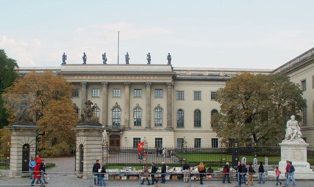 柏林洪堡大学创立于1810年,是蜚声中外的世界顶尖学府,其前身柏林大学,是二次世界大战前的世界学术中心,洪堡大学是世界上第一所将科学研究和教学相融合的新式大学,拥有十分辉煌的历史,被誉为“现代大学之母”,其教研合一、学术自由、教学自由、学习自由的洪堡精神影响了几乎所有现代大学。洪堡大学位于柏林市中心菩提树下大道上,毗邻世界文化遗产博物馆岛、勃兰登堡门和联邦总理府,是德国首都柏林最古老的大学。这所在当时由国家资助、男女合校的高等学府是由普鲁士教育大臣、德国著名学者、著名的教育改革家威廉.冯.洪堡创办。学校产生过29位化学、物理学、医学和文学诺贝尔奖得主,世界第一位诺贝尔化学奖得主即是该校产生。包括爱因斯坦、普朗克、薛定谔、赫兹、亥姆霍兹、冯.诺依曼、拜耳、费希特、谢林、黑格尔、叔本华等都在此任教,马克思、恩格斯、费尔巴哈、海涅和俾斯麦等均在此就读过。罗家伦、宗白华、吕炯、盛彤笙、王淦昌、赵九章、陈寅恪、傅斯年、周恩来、马君武、顾孟余、朱家骅、章伯钧、张君励、俞大维等中国一大批杰出中国留学生在此求学。