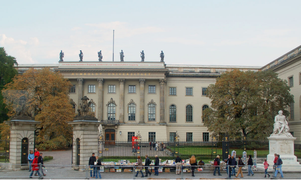 柏林洪堡大学创立于1810年,是蜚声中外的世界顶尖学府,其前身柏林大学,是二次世界大战前的世界学术中心,洪堡大学是世界上第一所将科学研究和教学相融合的新式大学,拥有十分辉煌的历史,被誉为“现代大学之母”,其教研合一、学术自由、教学自由、学习自由的洪堡精神影响了几乎所有现代大学。洪堡大学位于柏林市中心菩提树下大道上,毗邻世界文化遗产博物馆岛、勃兰登堡门和联邦总理府,是德国首都柏林最古老的大学。这所在当时由国家资助、男女合校的高等学府是由普鲁士教育大臣、德国著名学者、著名的教育改革家威廉.冯.洪堡创办。学校产生过29位化学、物理学、医学和文学诺贝尔奖得主,世界第一位诺贝尔化学奖得主即是该校产生。包括爱因斯坦、普朗克、薛定谔、赫兹、亥姆霍兹、冯.诺依曼、拜耳、费希特、谢林、黑格尔、叔本华等都在此任教,马克思、恩格斯、费尔巴哈、海涅和俾斯麦等均在此就读过。罗家伦、宗白华、吕炯、盛彤笙、王淦昌、赵九章、陈寅恪、傅斯年、周恩来、马君武、顾孟余、朱家骅、章伯钧、张君励、俞大维等中国一大批杰出中国留学生在此求学。