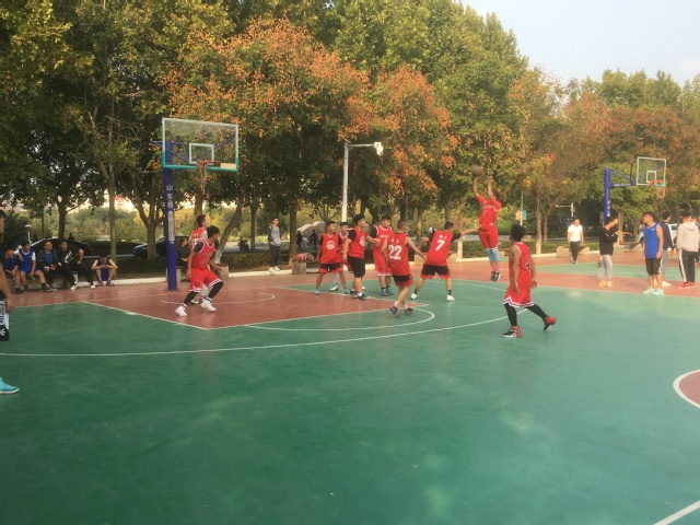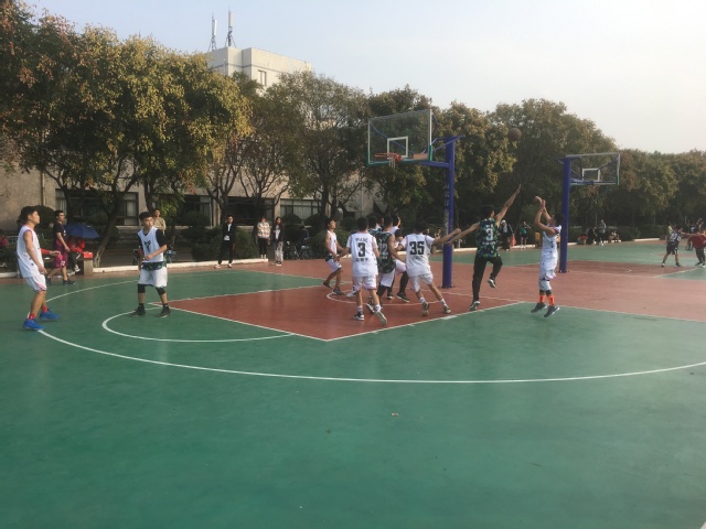 比赛期间陆续有同学到达赛场观战,场下的加油呐喊声使比赛进入高潮,面对胶着的局面,各队纷纷利用暂停时间稳定情绪、掌控节奏,保持着顽强的斗志。比赛中球员们上篮命中获得加罚机会,比分差距不断缩小,场下观众也为队员们呐喊鼓劲并用手机拍摄精彩时刻。四十分钟时间内,双方也难分高下。比赛结束后,各队伍纷纷合影留念。