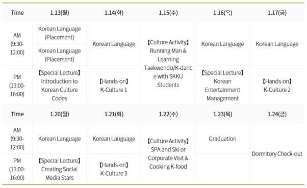 ●课程大纲11月13日(星期三)公布(WISE官网:https://winter.skku.edu)