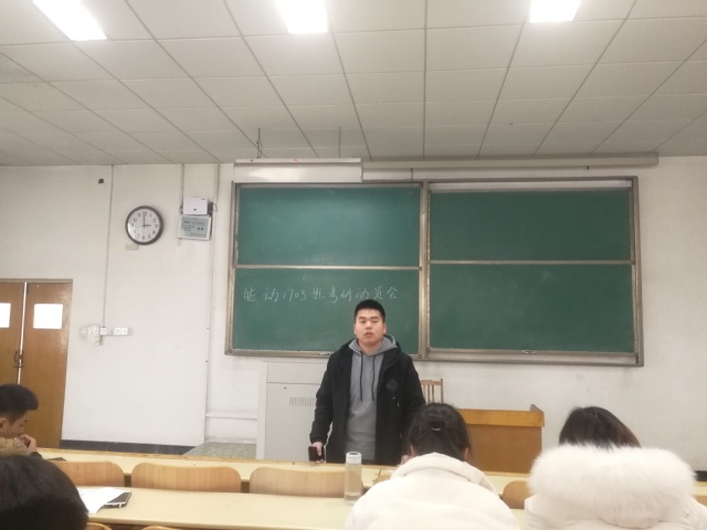 12月20日下午,我院能源与动力工程1703班于5号教学楼402教室召开了能动1703班考研动员会。此次班会由班长周彬主讲,能动1703班全体成员共同参加。