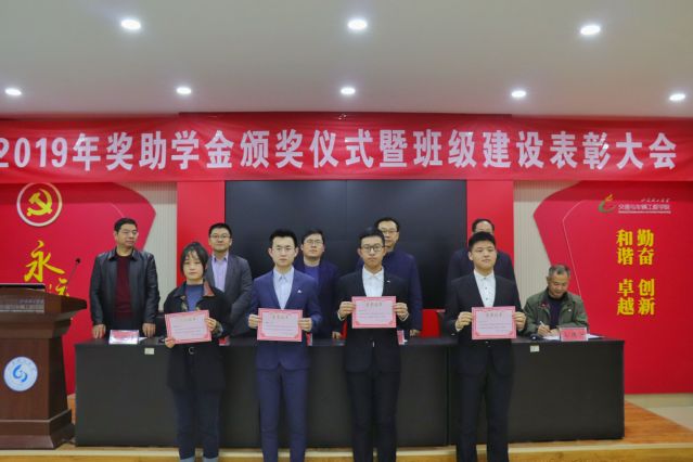 褚兆勇宣读了关于表彰2018-2019学年“院长奖学金”获奖者及“班级建设特色创建先进班级”的决定。“十佳大学生”、“自强之星”、“交通好学生”、“交通好团队”、“班级建设特色班集体”等获奖的先进集体和个人依次上台领奖并拍照留念。
