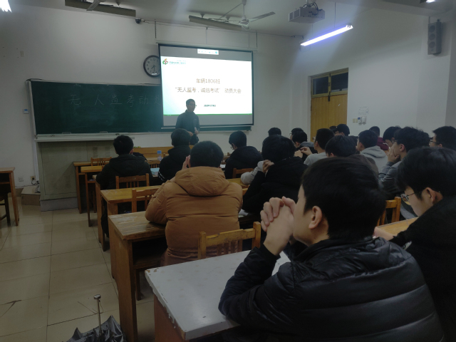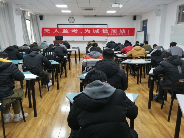 为进一步加强班级学风建设,增强同学们的诚信意识。继《高等数学》期中考试无人监考考试成功举行后,1月7日,车辆1806班于12教211进行《理论力学(英文)》无人监考考试。