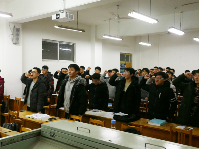随后,由班级学习委员金长城带领大家宣誓,车辆1806班全体同学紧握右拳,起立宣誓:“自觉遵守考试纪律,恪尽诚信公平原则……”铿锵有力的誓言在教室回荡,展现出车辆1806班昂扬奋发的精神状态。