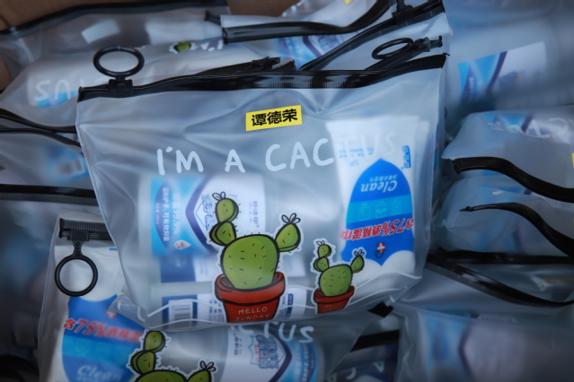 在学院全力做好疫情防控各项工作的关键时期,任成昊主动联系学院,提出了捐赠意愿。他和他的团队联系甄选了具有生产销售资质的厂家,购买了消毒酒精、免洗消毒凝胶、消毒湿巾等防疫物品,制成“专属”防疫物品包,在爱心包贴上每一位老师的名字。任成昊说:“能为母校做点实事,守护美丽校园,是交院人应尽的责任和义务。老师们很早就正常上班值班了,希望我能尽绵薄之力,为学校的防疫工作添砖加瓦,让学校的老师们多一份保障。”