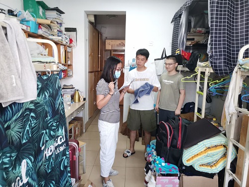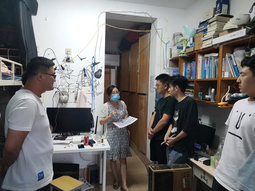 各辅导员在各个楼层的宿舍进行检查,着重检查宿舍的卫生是否过关,特别是卫生间是否整洁,阳台物品摆放是否整齐。检查的同时,各导员分别对同学们的生活状况和学习情况进行了详细的询问和了解,为日常生活和学习营造良好氛围。通过检查发现,绝大部分学生宿舍能够将许久未住的宿舍进行彻底的清洁,并且保持整洁室内环境。各辅导员希望同学们可以继续保持良好的宿舍环境。对于部分宿舍存在卫生不净、物品摆放杂乱的问题,各辅导员当场给出了整改措施,积极营造良好的宿舍环境。