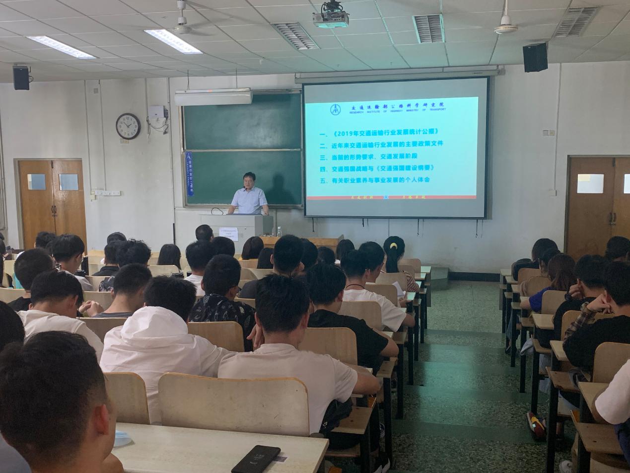 此次会议的主题是“交通运输高质量发展建设的形势任务——《交通强国建设纲要》的学习与思考”。张红卫教授分别从近年来交通运输行业发展的有关政策、文件、统计公报、当前交通的发展形势与要求以及交通强国战略等方面对我国的交通运输行业进行了由浅入深的讲解,并结合自身的工作经验和体会对我院师生的职业素养和事业发展提出了建议。张红卫教授强调他在学校中除了按要求学习教学大纲规定的课程,掌握相关的基础知识、基本理论和相应的学习、研究、工作方法外,还应注重职业素养的培育和提高,他认为职业素养的培育和提高是一个人能否顺利的找到满意的工作、服务与回报社会、实现个人奋斗目标、快乐工作与生活的基础。听完张红卫的演讲,教室内掌声雷动。