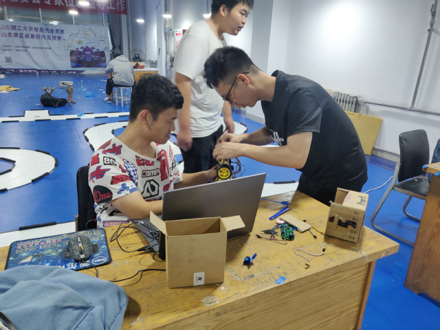 各小组的测车队员对自己亲手研制的小车信心十足,都跃跃欲试。在测试过程中,每个人都专注在自己的小车上,一次又一次的调试、试跑、调试、试跑,为的就是即将到来的竞赛,每个人都想在竞赛中大放光彩,为智能车争光。