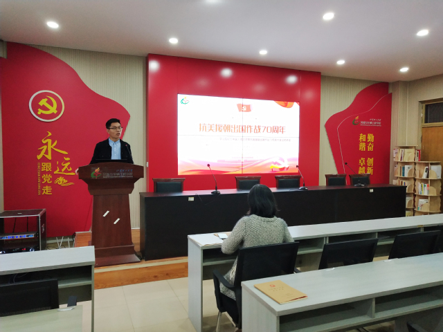 2020年10月29日下午,我院学生第三党支部于12教217开展双周主题党日活动,本次活动的主题是:纪念中国人民志愿军抗美援朝出国作战70周年集中学习暨红色先锋成长计划:学生党员“五个一”培养工程开启仪式。本次活动由学生第三党支部书记侯娟同志主持,党支部全体党员参加。