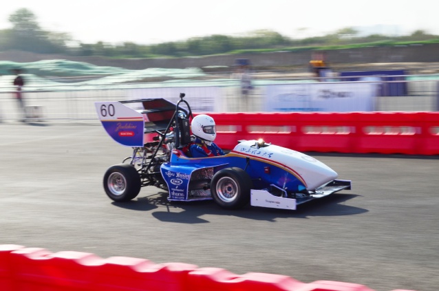 首先进行的是直线加速项目,第一车手张玉明首先跑出了4′27″的成绩,随后由第二车手刘兆强跑出了4″59的成绩。接下来是高速避障项目,第一棒由第一车手张炫钰跑出1′23″428的成绩,今天的比赛就此告一段落。