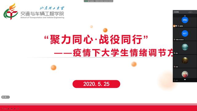 为切实做好新冠肺炎疫情下学生的心理健康教育,5月25日,我院2018级车辆工程专业、能源与动力工程专业全体学生齐聚腾讯会议,开展“疫情下大学生情绪调节方式”主题班会,班会由辅导员崔建强主持。