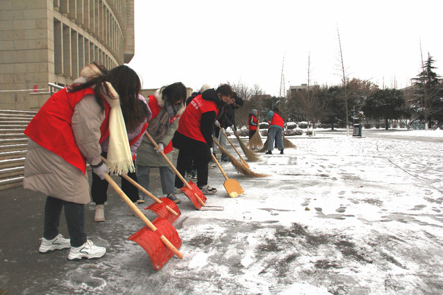 12月29日,校园迎来了入冬后的第一场寒潮大雪,降雪给学生及过往车辆的出行带来了安全隐患。为维护校园环境卫生整洁,确保师生安全出行,下午交通学院青年助残协会组织校园义务扫雪活动。协会成员在12号教学楼201教室集合,随后领取了除雪工具。简单分配任务后同学们便前往图书馆南草坪位置清理积雪。