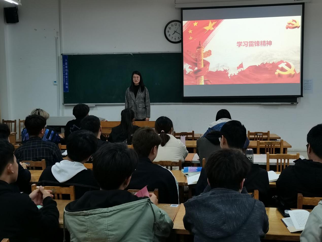 会议伊始,团支书王丽雪首先向同学们介绍了雷锋同志的生平,以及雷锋精神的由来以及发展,也细细阐述了雷锋精神是我辈青年不断发展继承的精神之一。同时王丽雪也用雷锋同志具体的事迹向同学们阐释了怎样才能真正做到为人民服务。底下的同学们无不认真听讲,用心感悟。
