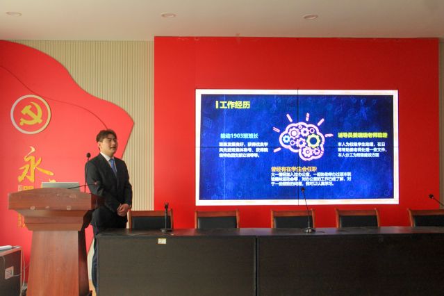会议伊始,张温龙致开幕词,他介绍了本次换届答辩的基本流程,并宣布本次换届答辩正式开始。此次换届活动共分为两个环节。首先是竞选人答辩,23位竞选人使用PPT,从个人介绍、工作经历、岗位认知、竞选优势、工作预期以及工作展望等方面进行为时5分钟的演讲。他们思路清晰,想法独特,结合过往的工作经验,提出了很多创新性措施,以便于更好的服务学生。其后,评审团成员根据其竞选发言,就其工作优势,部门认知与分工以及对未来工作的展望等多方面进行提问,记录每位竞选者的表现并进行打分。