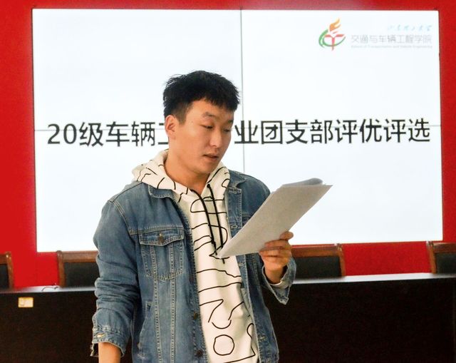 本次活动由20级车辆工程专业辅导员吕科晨主持,车辆工程专业各团支部成员在十二号教学楼217教室参与评选。活动首先由吕科晨向大家宣读共青团评选工作的通知,解读完毕后,参与评选人做简短演讲,随后各支部团支部进行投票无记名。