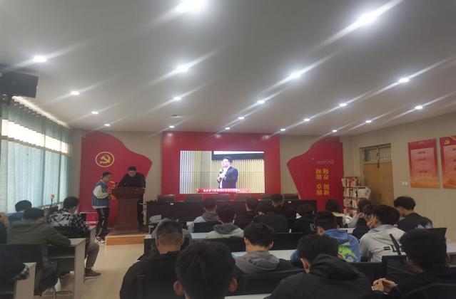 活动开始前,同学们有序就坐。随后由张凯为同学们播放直播,进行党史学习教育。
