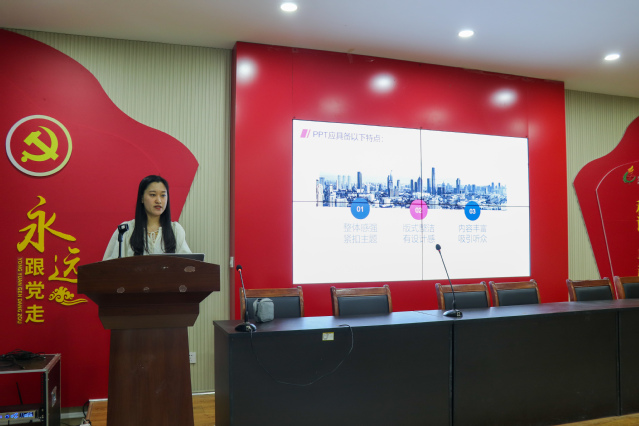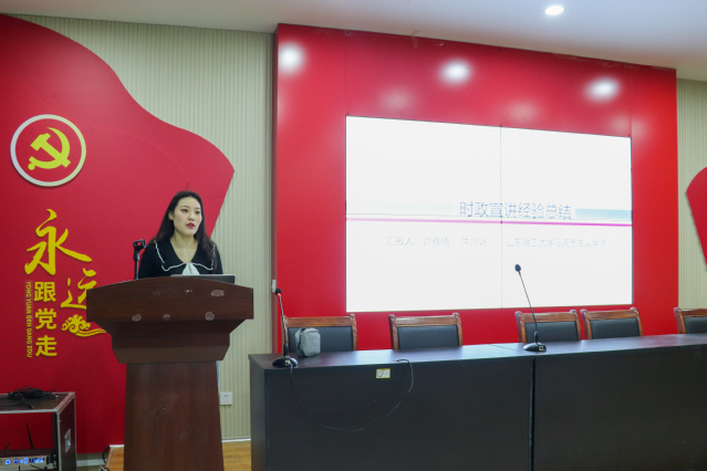 会议主要分为马克思主义学院时政宣代表经验分享、交通学院党史学习宣讲团细则(试行)讲解两部分。首先由马克思主义学院时政宣团代表管雅倩从选题、切入点以及时政热点等方面应注意的问题进行讲解。随后,由时政宣讲团代表牛婷娴从PPT制作以及宣讲过程中需要注意的问题进行经验分享。