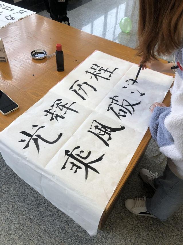 此次书法绘画展示活动分为硬笔、软笔、长卷画三部分。同学们围绕中国共产党的