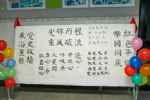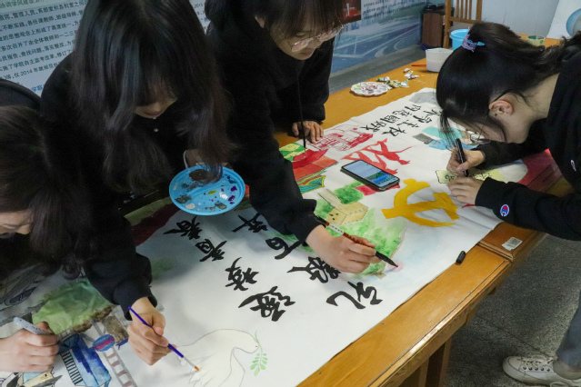 此次书法绘画展示活动分为硬笔、软笔、长卷画三部分。同学们以中国共产党的百年风雨和波澜壮阔的伟大实践为主题,饱含着对党的深厚情感进行现场创作,以书法和绘画的表现形式展现了中国共产党的光辉历程。