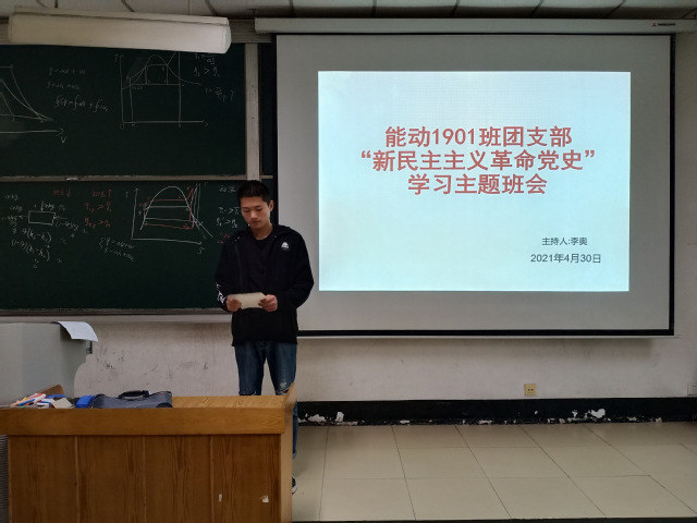 为提高班级团员思想意识,增强团员的责任感与使命感。4月30日上午,我院能动1901班团支部于3号教学楼214教室开展新民主主义学习暨重温入团誓词主题班会。此次活动由能动1901班团支部书记李奥主持,能动1901班全体成员参加。